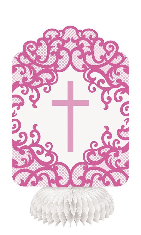 3 x Honeycomb Decorations - 8"/20cm - Fancy Pink Cross